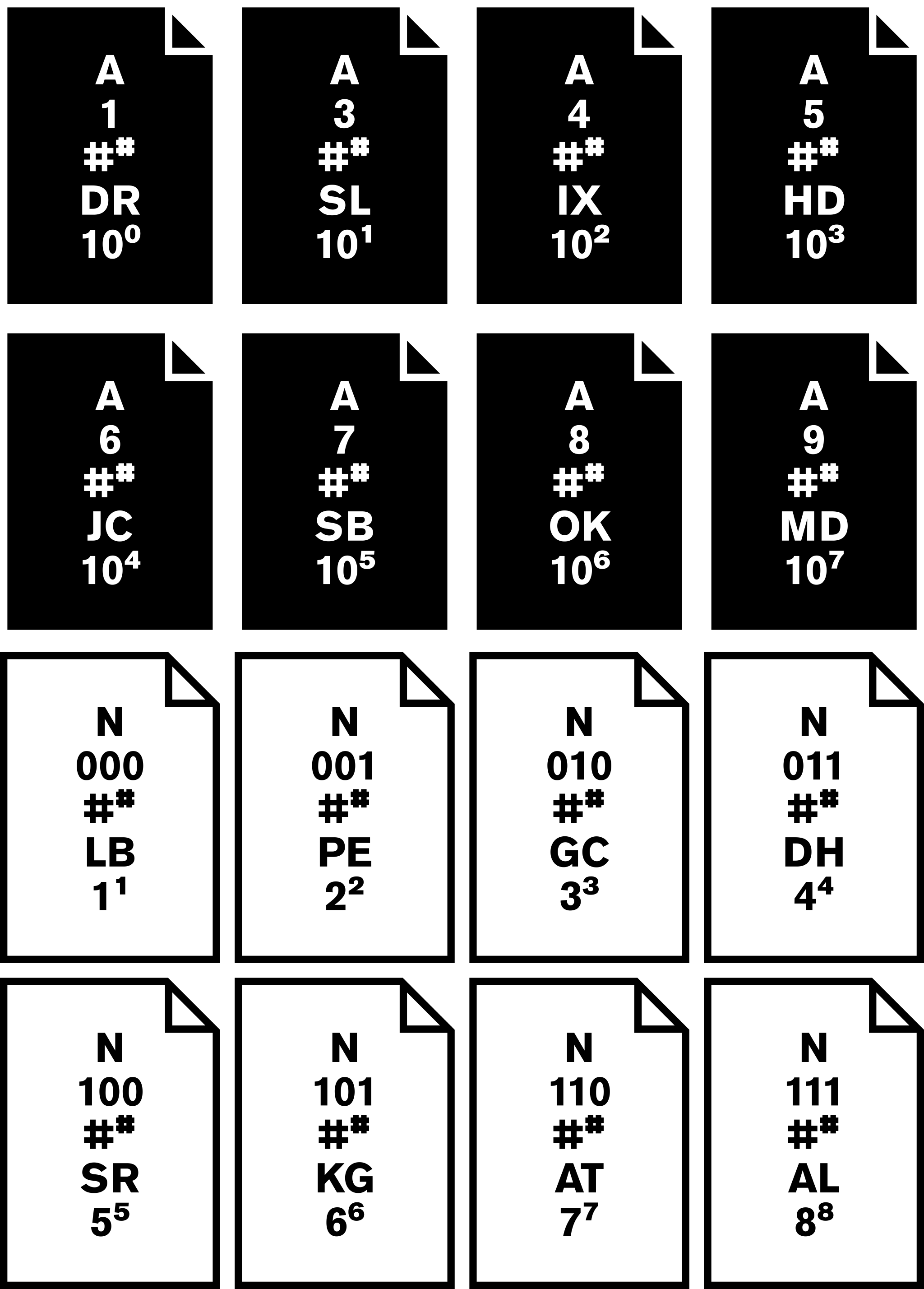 The A Series of Wf## holds 8 different objects of different file size, ranging from 1 byte to 10000000 bytes. Each file is dedicated to a conceptual artist pioneering with numbers, measurements or mathematical relations.
